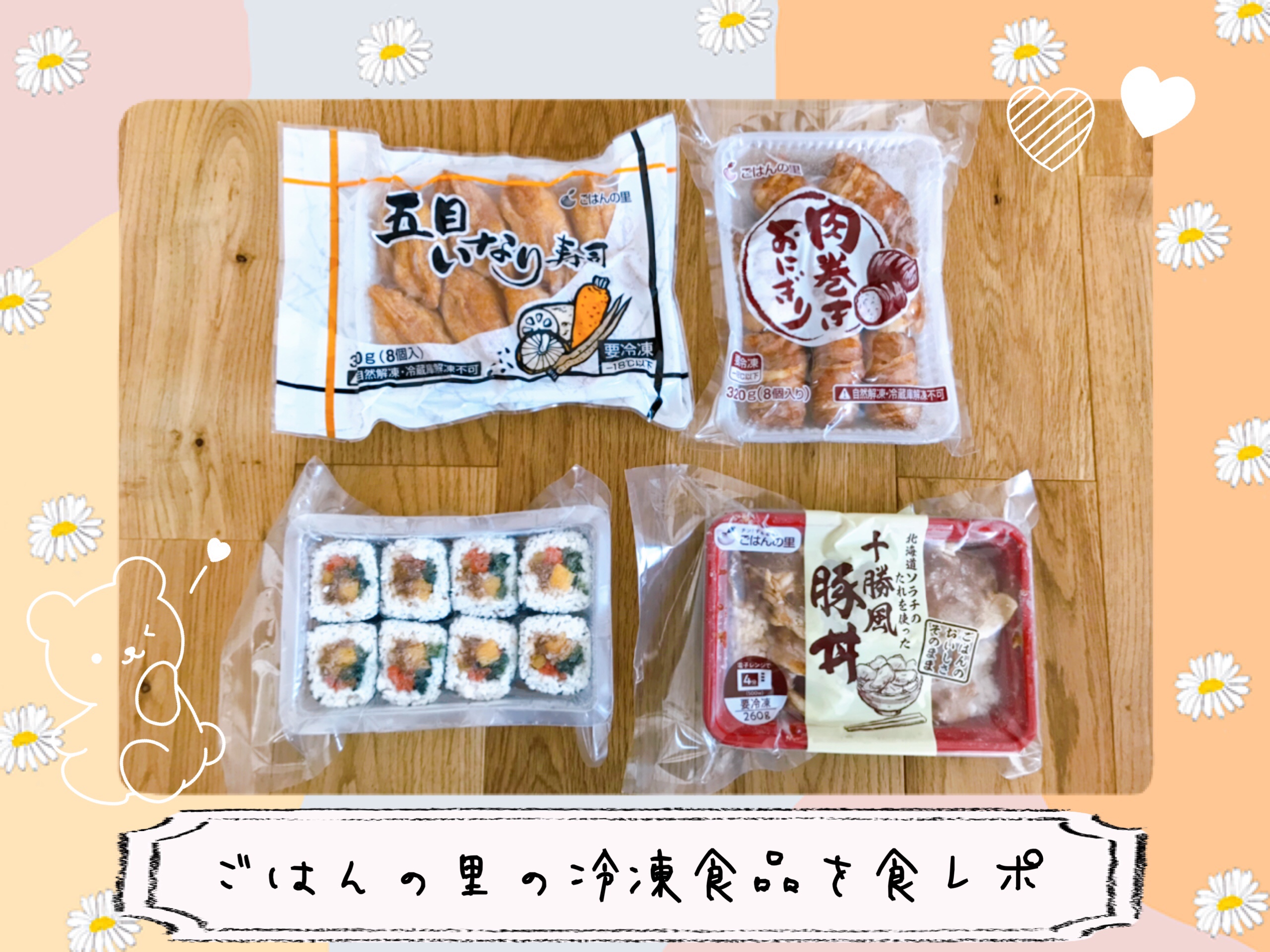 【ごはんの里冷凍便を口コミ】肉巻きおにぎり・いなり寿司・キンパ・十勝風豚丼の4種類