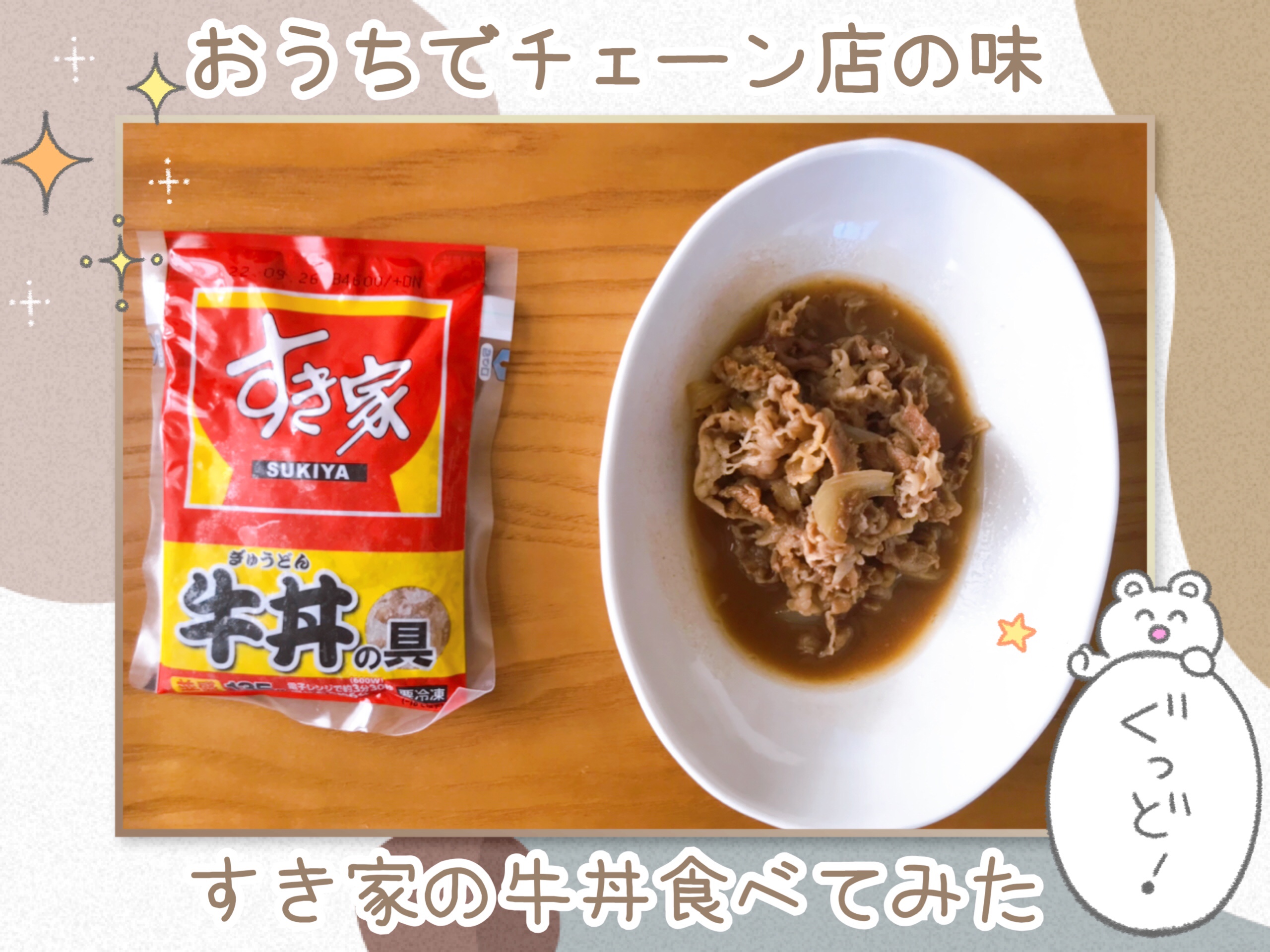 冷凍食品で売られている、すき家の牛丼の具を買って食べてみました♪